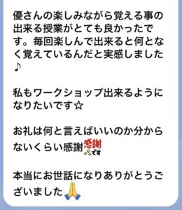 優さんの楽しみながら覚える事の出来る授業がとても良かったです。