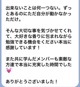 そんな大切な事を気づかせてくれて、大好きな香りに包まれながら勉強できる機会をください本当に感謝しています!