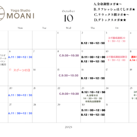 いつもヨガスタジオMOANIでのレッスンにお越しいただきありがとうございます。 来月もヨガを通して、一人一人皆さんと一緒に、それぞれの心と体を整える時…